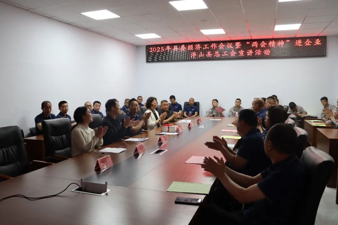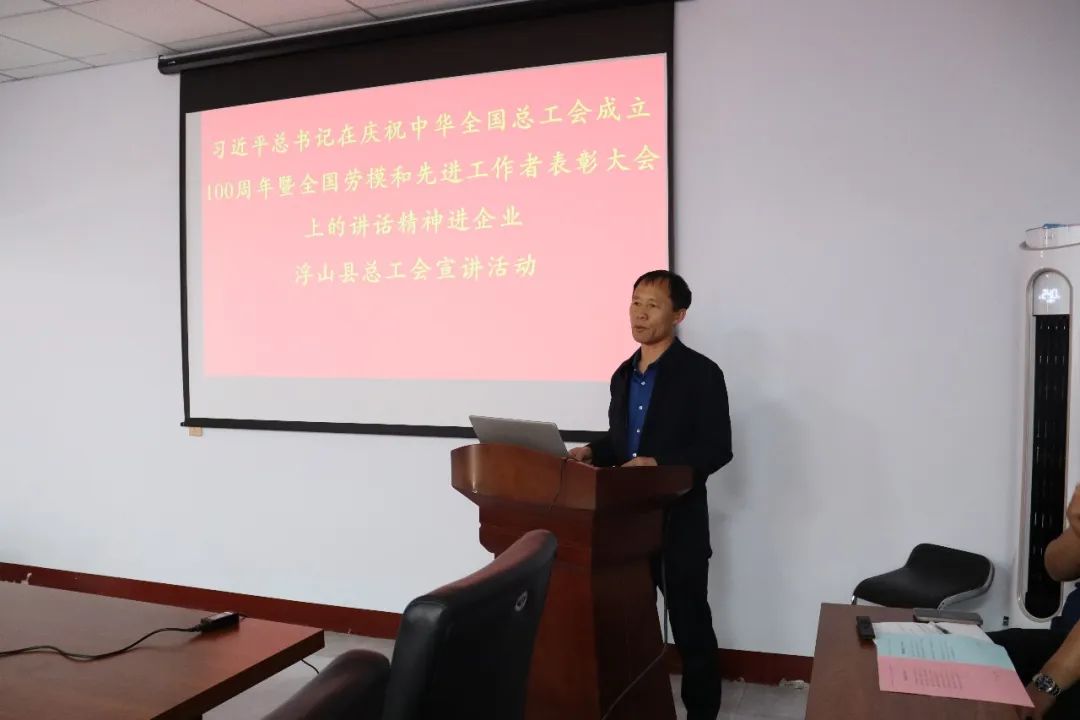 县总工会党组书记、主席姚晓向企业职工们宣讲了习近平总书记在庆祝中华全国总工会成立100周年暨全国劳动模范和先进工作者表彰大会上的重要讲话精神,以及县委经济工作会议和县“两会”精神。同时,结合工会工作实际,提出了贯彻落实的具体举措和要求。企业要关心关爱职工,为职工成长成才创造良好条件;劳动模范、先进代表要发挥示范引领作用,以精湛技艺、创新精神和敬业态度树立标杆,激发员工动力,推动技术革新与文化建设,助力企业高质量发展;广大职工朋友也要珍惜这次难得的学习机会,端正态度,集中精力,以饱满的热情和严谨的学风投入到学习中去。要带着问题学,结合岗位实际,深入思考,积极交流,力求学有所思、学有所悟、学有所获。要将学习成果转化为推动工作、促进生产的强大动力,干一行、爱一行、钻一行、精一行,在平凡的岗位上创造不平凡的业绩,争做有理想守信念、懂技术会创新、敢担当讲奉献的新时代产业工人。